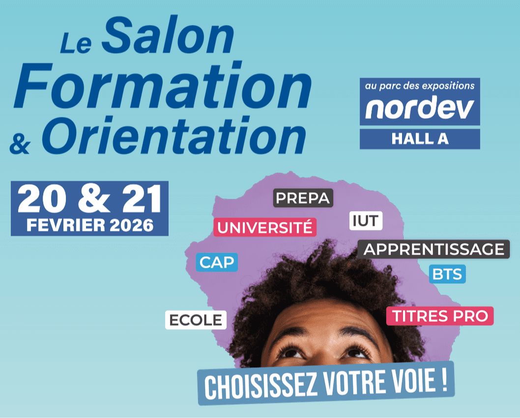 Vous êtes lycéen, élève en classe prépa, étudiant ou titulaire d’un bac +1, bac+2 ou bac+3 ?Le Salon de la Formation et de l’Orientation est un événement dédié aux lycéen(ne)s, étudiant(e)s et futur(e)s étudiant(e)s afin de leurs permettre de trouver des réponses à toutes leurs questions d’orientation et de choix d’études dans le but de construire et définir leur avenir.RDV du 20 au 21 février 2026 de 9h à 17h à La Nordev (Entrée principale en face de M.Bricolage)L'accès au salon est gratuit